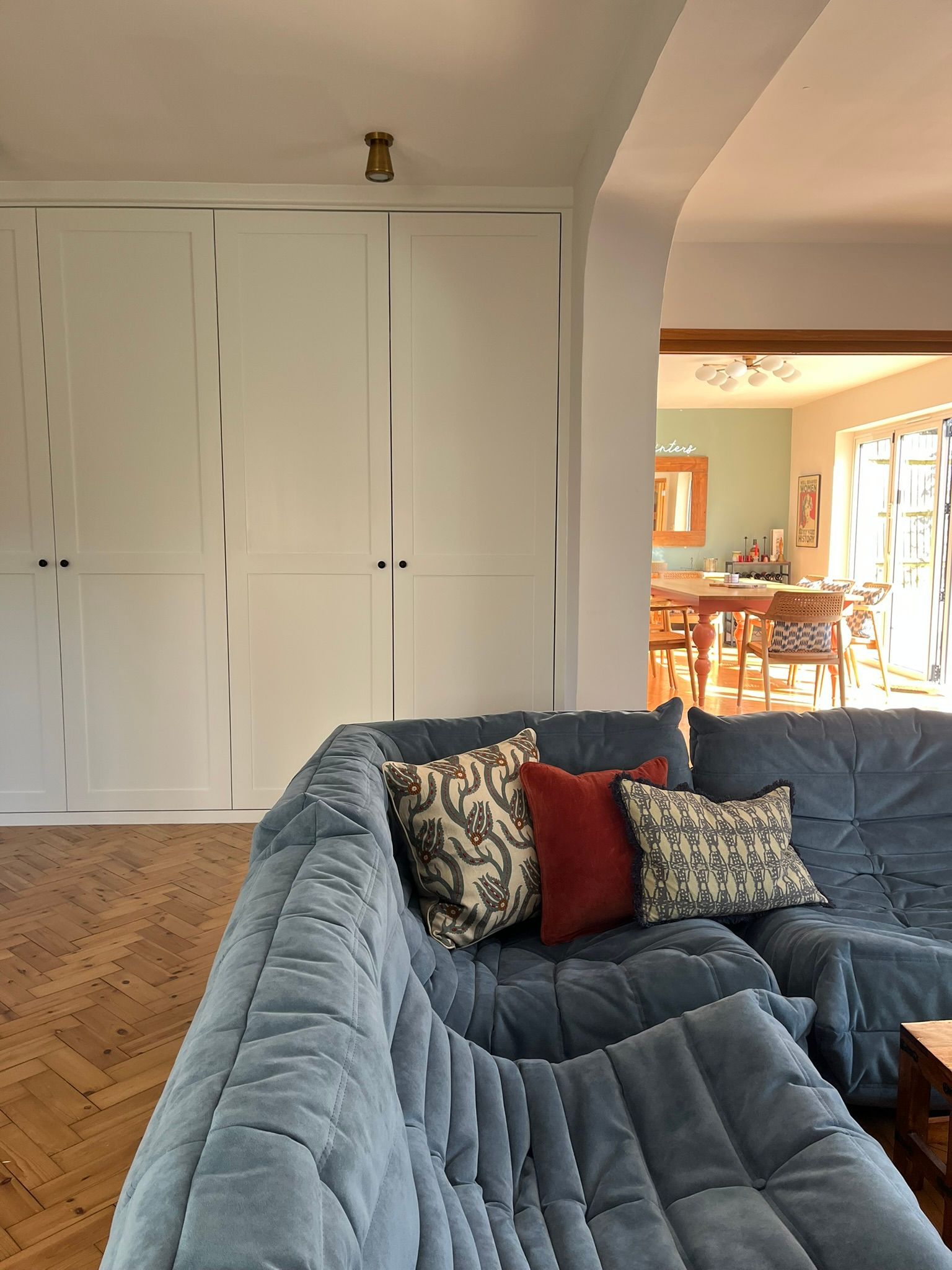 This family needed help designing a multi functional kitchen and living space. We worked together to find the best overall layout for the whole family, advised on best kitchen layout, paint colours, flooring, tiles and lighting. We also provided a shopping list for all the furniture & furnishings, wall decor and styling elements to pull the scheme together. We were on hand (virtually!) throughout the build for questions and support.
